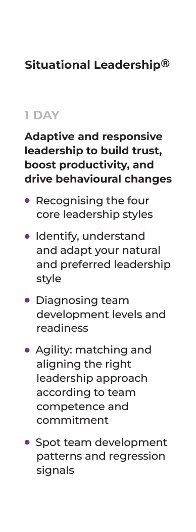 ♦ Adaptive and responsive leadership to build trust, boost productivity, and drive behavioural changes