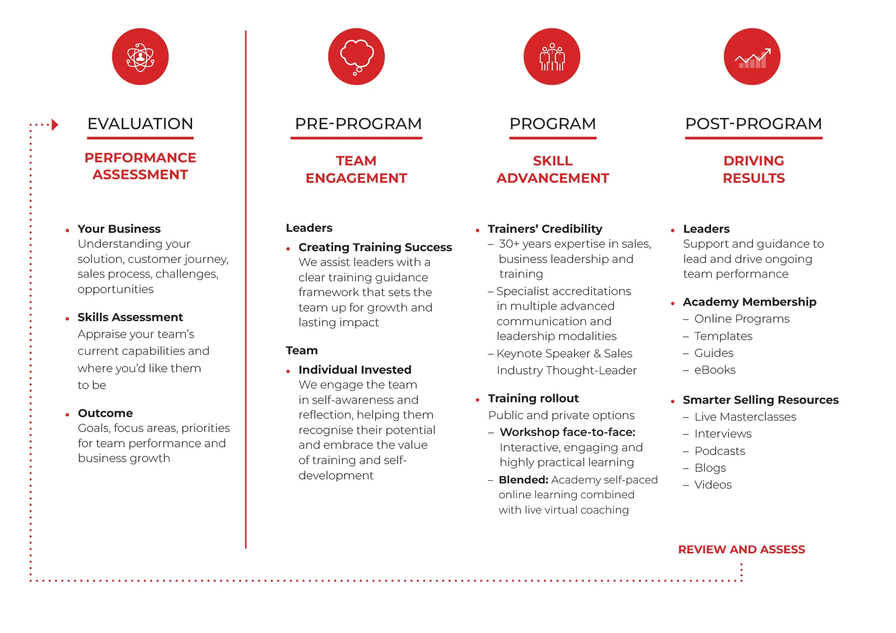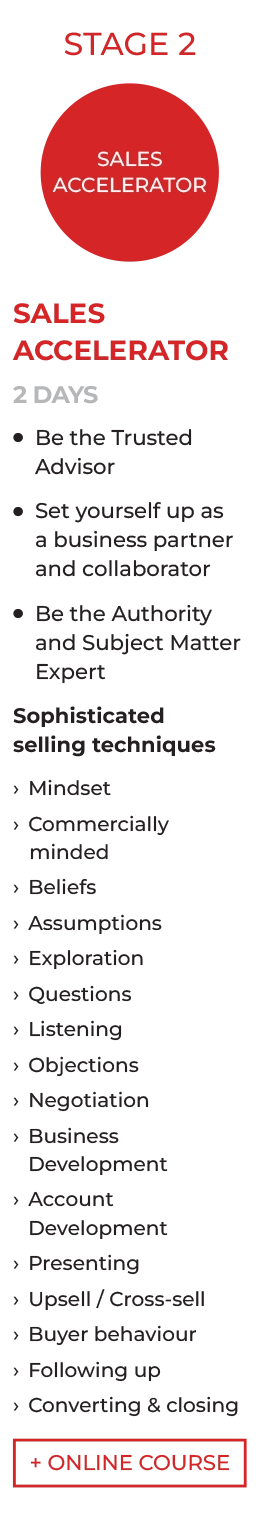 Plus, gain ongoing access to our extensive sales development resources via our online sales training learning hub –Â The Academy